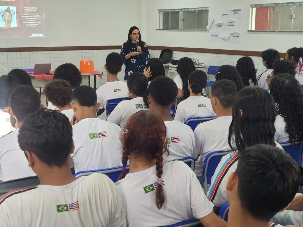 A Diretoria de Cidadania e Direitos Humanos da AMMA, por meio da juíza Raquel Castro, deu início, nesta segunda-feira (19), no IEMA Pleno Barjonas, no Cohatrac, ao ciclo de palestras com foco na ‘proteção de crianças e adolescentes no ambiente virtual’. A programação, destinada a estudantes escolas da rede estadual e particular de ensino de São Luís, será realizada durante toda esta semana em alusão ao Dia Nacional de Combate ao Abuso e à Exploração Sexual de Crianças e Adolescentes, celebrado em 18 de maio.