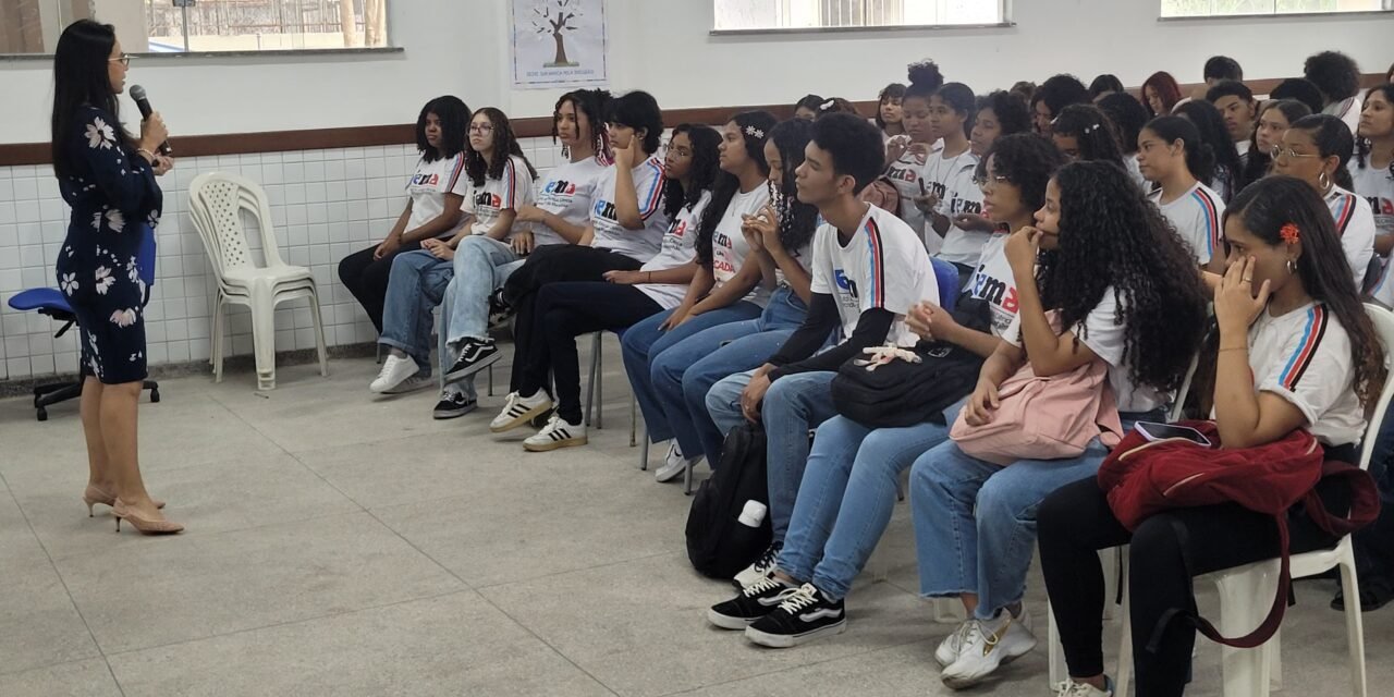 Com olhares atentos e concentrados, cerca de 100 estudantes foram conscientizados e receberam orientações importantes sobre o enfrentamento à exploração sexual infantojuvenil com palestra proferida pela juíza Raquel Castro. Ela explicou que a iniciativa visa promover a educação em direitos, difundindo informações de prevenção à violência sexual e divulgação de canais de denúncia para adolescentes.